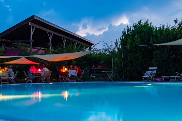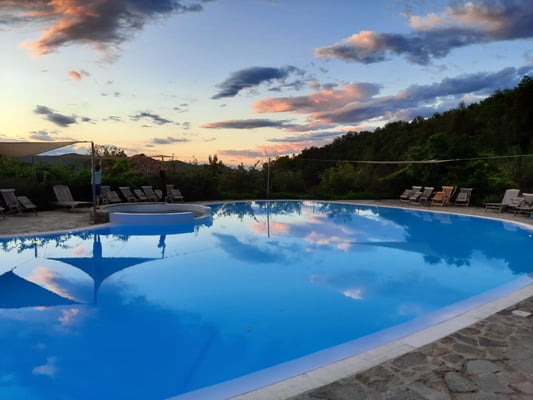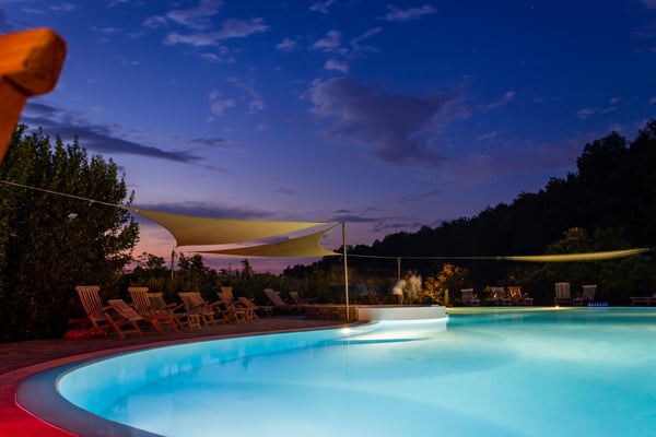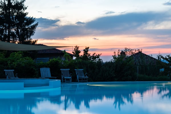 Mit seinen 14 x 20 Metern ist der Pool auch bestens geeignet, wenn man zum Beispiel nach einem typisch piemontesischen Essen etwas für die Fitness tun möchte: 50 Längen, und der Kilometer ist perfekt. Dass sich dabei im Pool spielende Kinder und Schwimmer nicht gegenseitig behindern, dafür sorgen die verschiedenen Zonen mit unterschiedlichen Tiefen. Ein separates Kleinkinderbecken mit 35 cm Tiefe erfreut auch die jüngsten Gäste. Für alle gilt: Kinder dürfen ausschliesslich in Begleitung von Erwachsenen, die schwimmen können, aufs Poolgelände.
