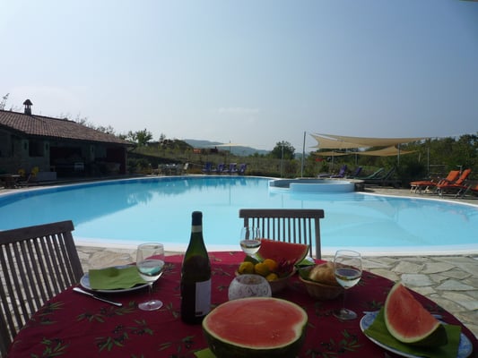 Rund um den Pool gibt es genügend Schatten-, Sitz- und Liegeplätze für Bücherleser, Spielespieler, Sonnenanbeter, Aufpasser, Mittagsschläfer, Energie-Auftanker, Gedanken-Nachhänger, Träumer, ....